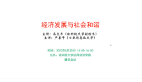 首先,严善平教授用数据说明了七八十年代以来中国经济的发展情况:高速稳定发展,实现了经济规模的扩大和人均收入水平的提高。此外,经过40余年的发展,中国人均寿命增长了8.57岁,综合反映了经济发展和社会发展的成效。但是,在取得令人瞩目的发展成果时,中国仍面临分配不均的问题,并由此引入了今天的讲座主题,即经济发展与社会和谐的关系。
