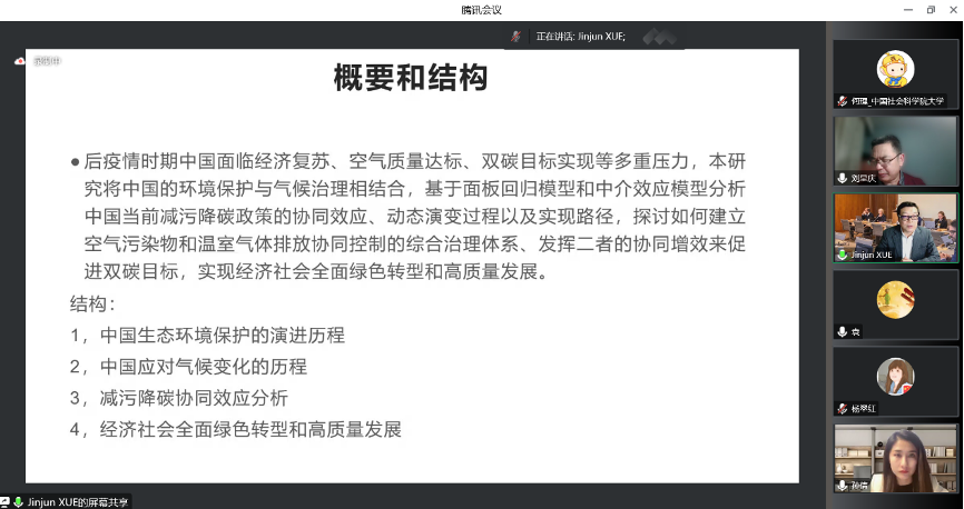 国际交流与合作处联合主办。日本名古屋大学-中创碳投碳中和联合实验室主任薛进军教授作为主讲人,主题为《减污降碳政策的协同增效与实现路径分析》。讲座由伦敦大学学院孟靖副教授主持,来自中国P站