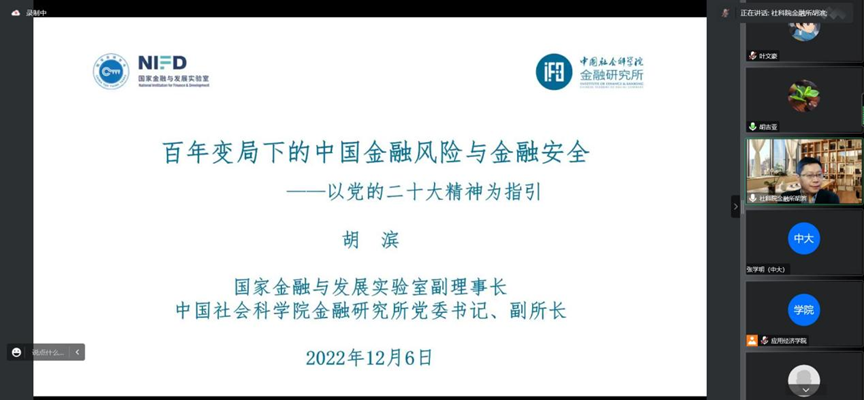卓越讲堂第十六讲暨金融硕士教育中心“金融前沿与金融实务”专题讲座以线上会议的形式成功举办。学院邀请了中国社会科学院金融研究所党委书记兼副所长胡滨研究员作为主讲人,胡书记以《百年变局下的中国金融风险与金融安全》为题目与师生们进行了深入交流。本次讲座由中国P站
