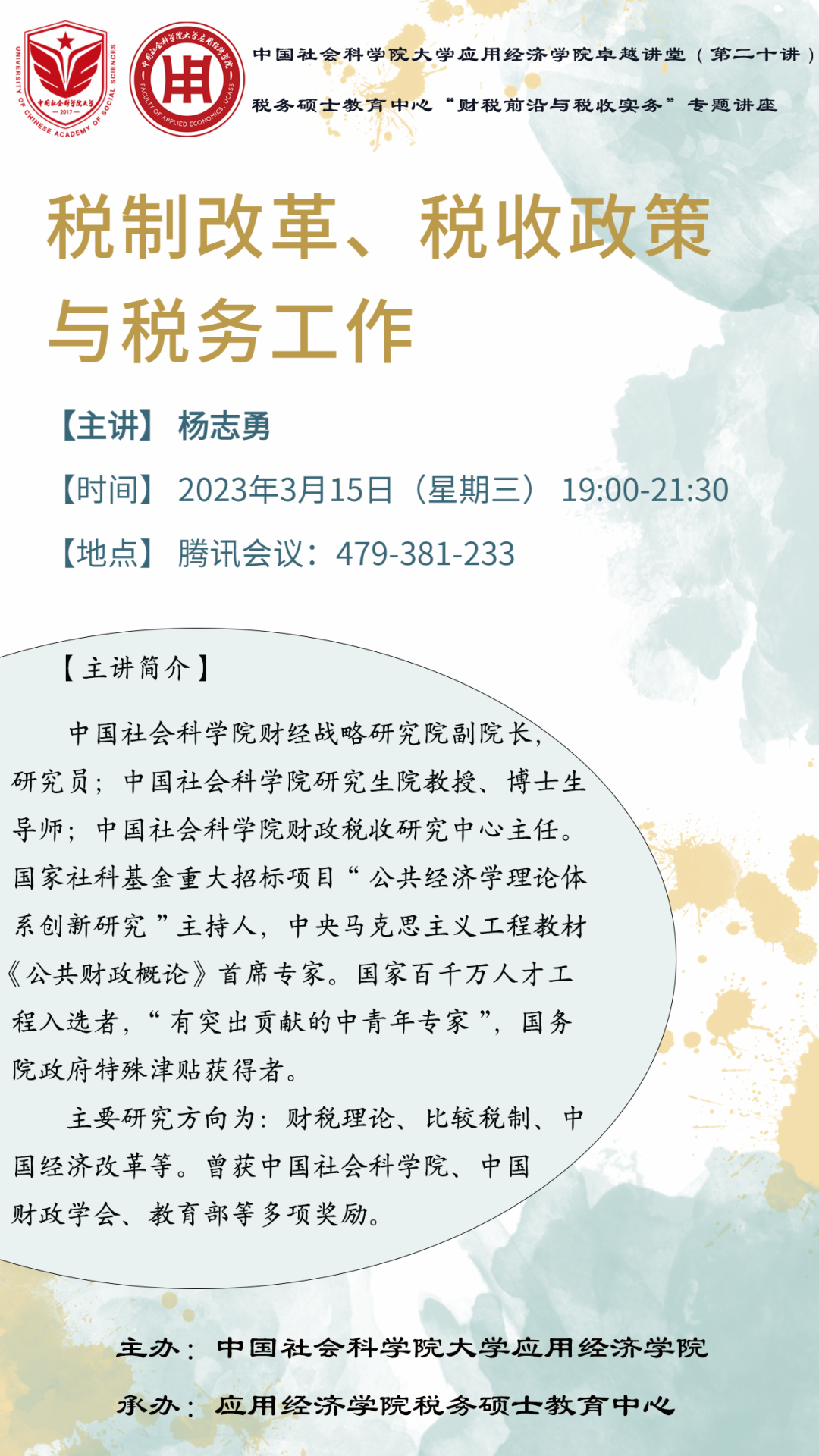 【讲座预告】卓越讲堂第20讲丨杨志勇:税制改革、税收政策与税务工作