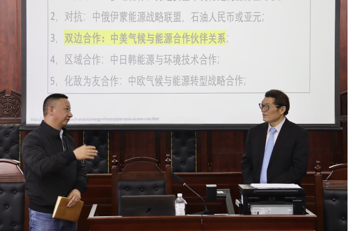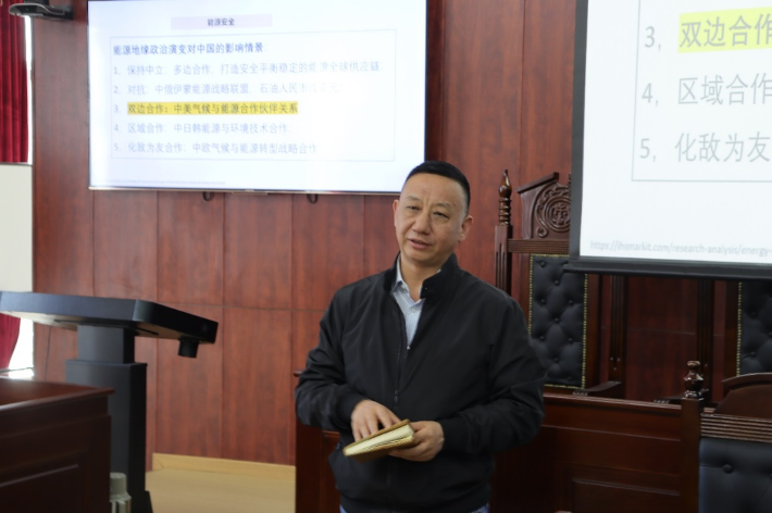 副院长陈洪波教授对本次讲座进行了总结。陈洪波教授指出,气候变化及其带来的风险越来越大,要应对气候变化就必须要走能源转型的道路。本次讲座围绕能源转型和碳中和主题,从全球气候治理困境、碳中和技术路线图、全球能源价值链危机、能源安全与能源地缘政治变化几个维度进行了分析,内容翔实、深入浅出,为在座师生提供了国际视野来看待气候变化带来的全球政治演变和能源安全问题,使在座师生受到了很大的启发。本次讲座持续两个小时,在全场热烈的掌声中圆满结束。