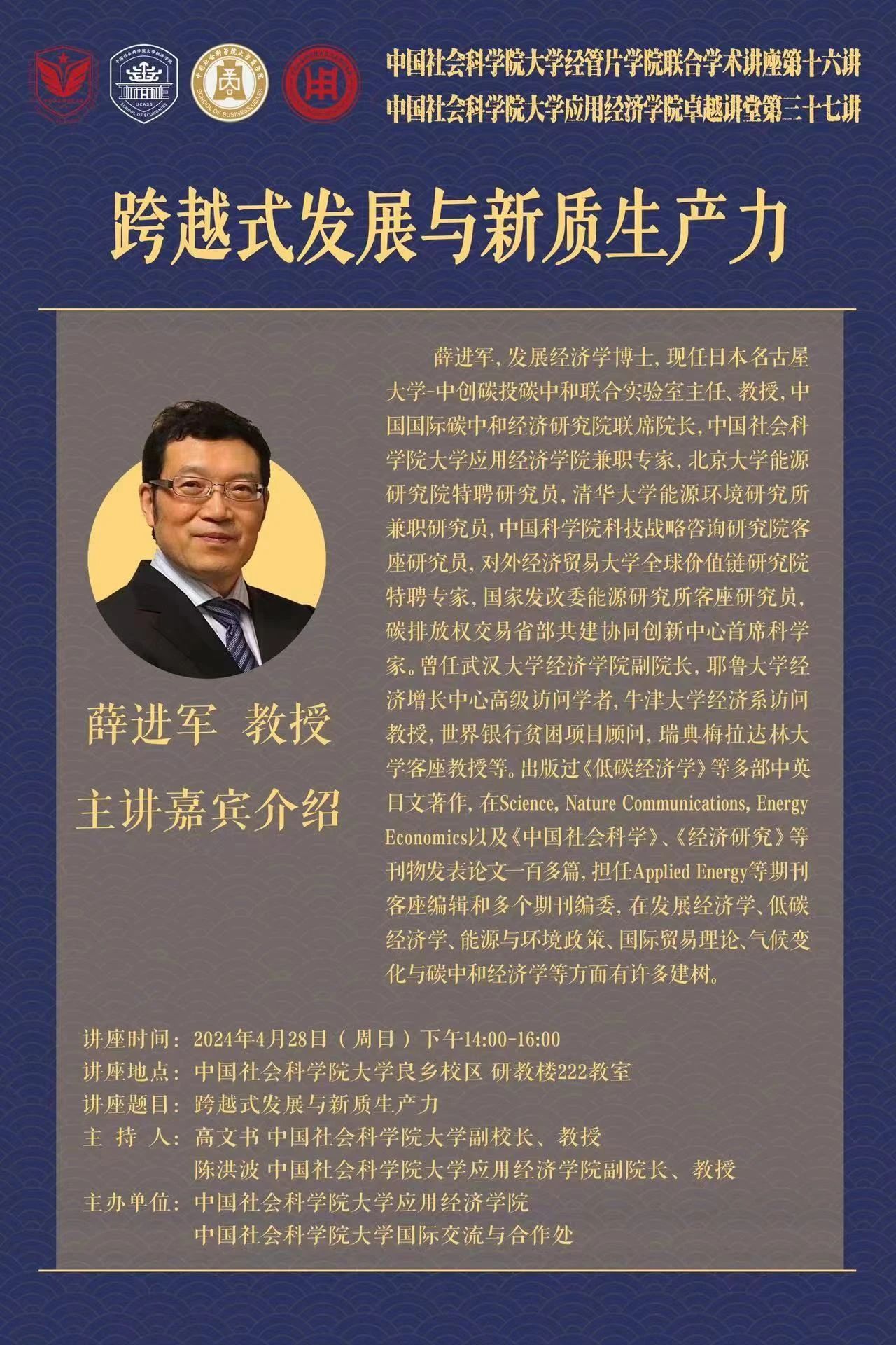 讲座预告|卓越讲堂第三十七讲:薛进军:跨越式发展与新质生产力