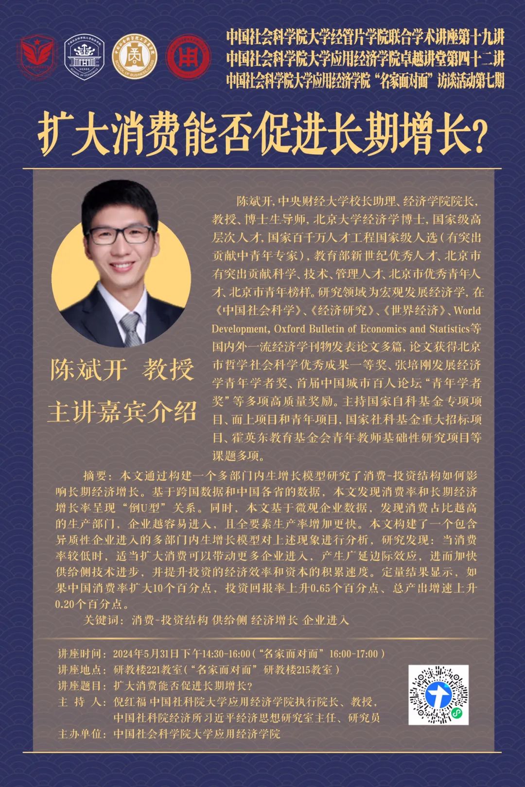 讲座预告|卓越讲堂第四十二讲 陈斌开:扩大消费能否促进长期增长?