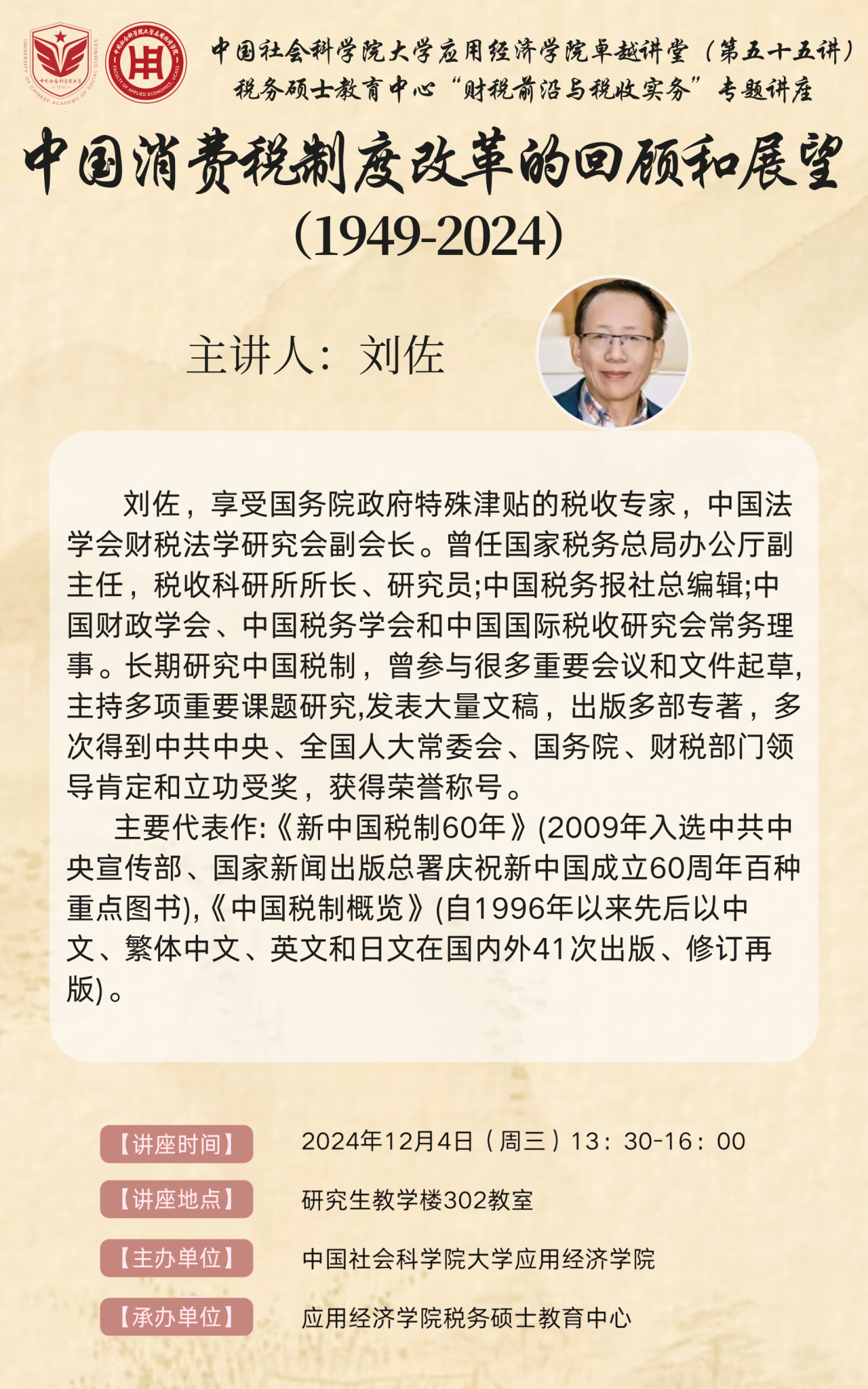 卓越讲堂预告 | 中国消费税制度改革的回顾和展望