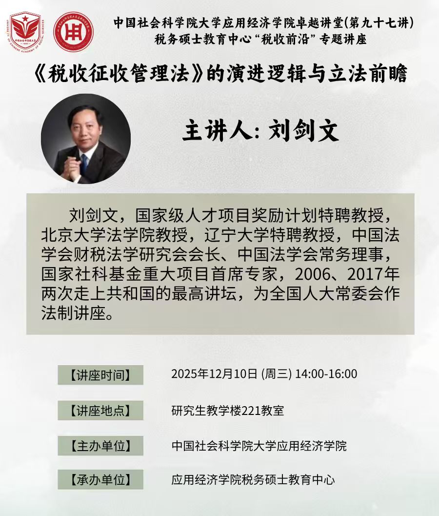 卓越讲堂预告|刘剑文:《税收征收管理法》的演讲逻辑与立法前瞻