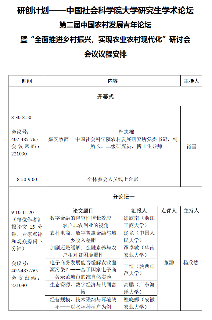 2022年研创计划将资助举办研究生学术论坛“第二届中国农村发展青年论坛暨‘全面推进乡村振兴,实现农业农村现代化’研讨会”。
