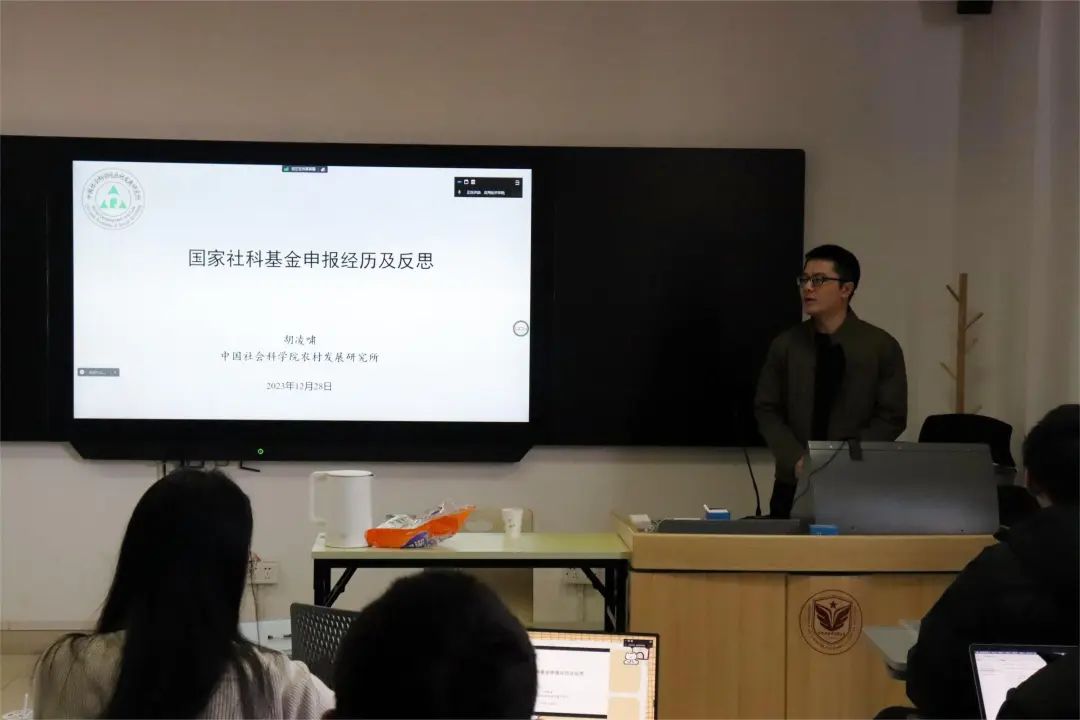 胡凌啸,中国社会科学院农村发展研究所助理研究员,分享主题为《国家社科基金青年项目申请经验》。在汇报中,他结合自己项目申请经历、相关经验教训以及项目申请书撰写要点等进行了分享。