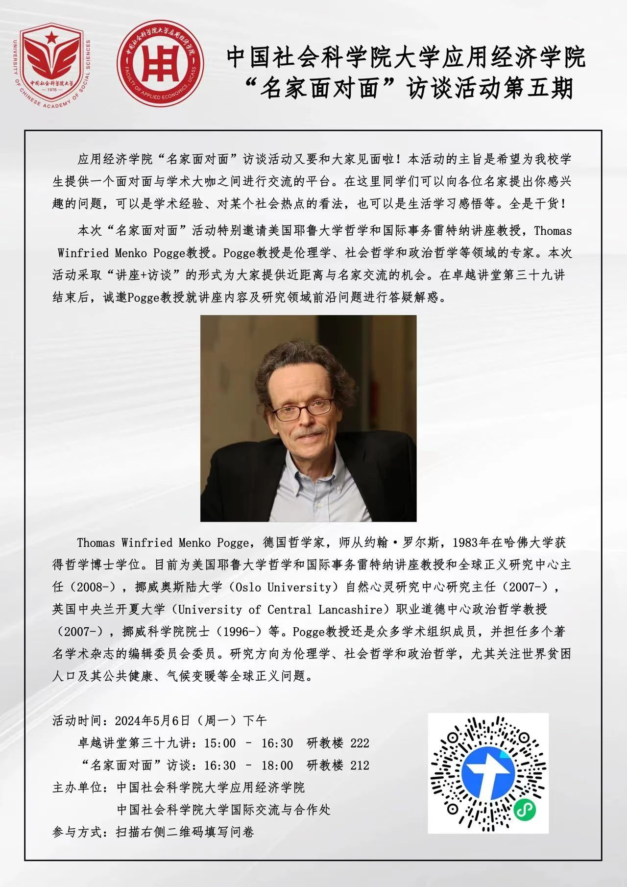 中国P站 第五期“名家面对面”访谈活动——Thomas Pogge教授