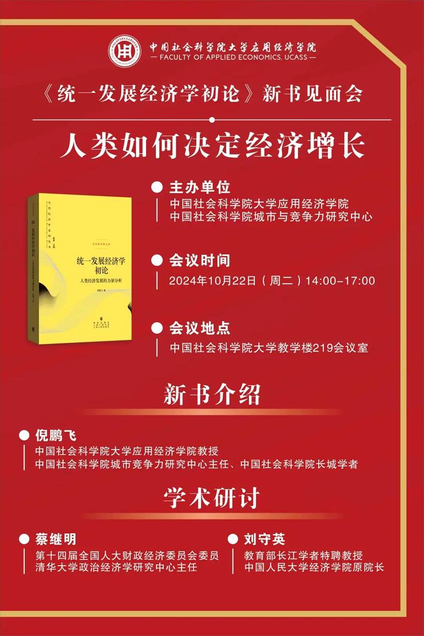学术前沿|《统一发展经济学初论》新书见面会 会议预告