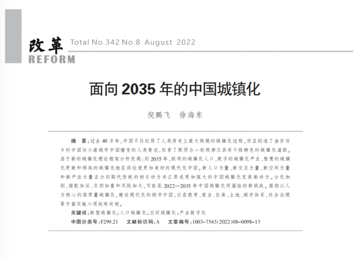* 《面向2035年的中国城镇化》原载于《改革》2022年08期(总第342期),注释及参考文献略。