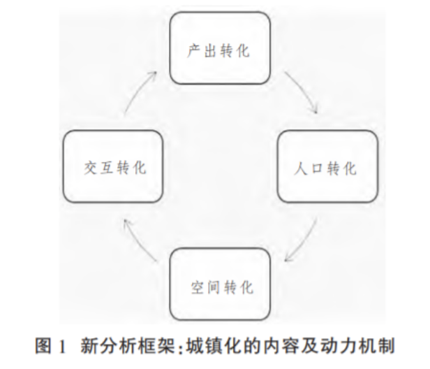 作为农业时代向城市时代的过渡,城镇化实质是人口、空间、交互和产出转化及互动的过程。