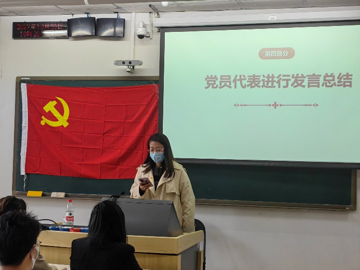 最后,由党员代表向大家分享了这次学习二十大活动的心得与感想。党员代表们激情澎湃,纷纷表示在这次学习二十大的主题活动中全面理解了二十大的重点内容和核心精神,受益匪浅。