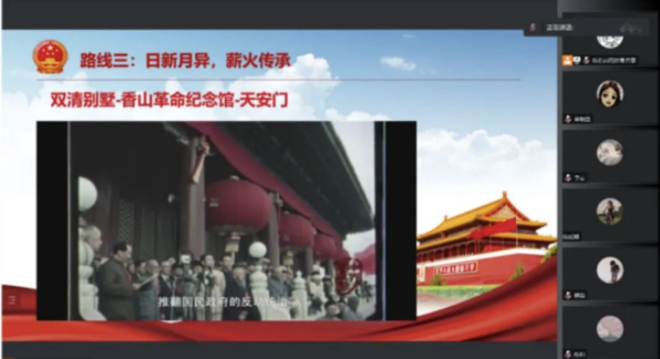 2022年10月14日晚,2021级金融硕士1班召开“红色云履”主题班会。与会同学基于“双清别墅-香山革命纪念馆-天安门”路线进行线上参观及交流感悟。