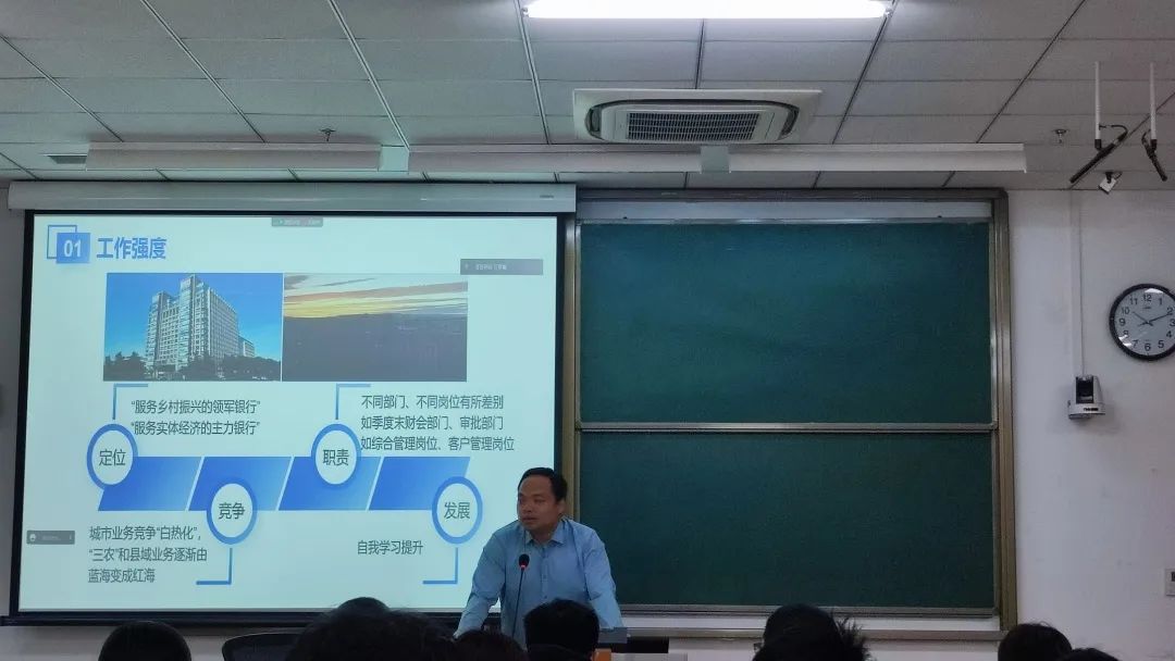 陈良老师带来了中国农业银行总行的工作经验分享,从工作强度、薪资待遇和晋升空间方面介绍了农行总行的工作,并针对公文写作、人际关系、自身本领以及心态方面给出了几点建议。