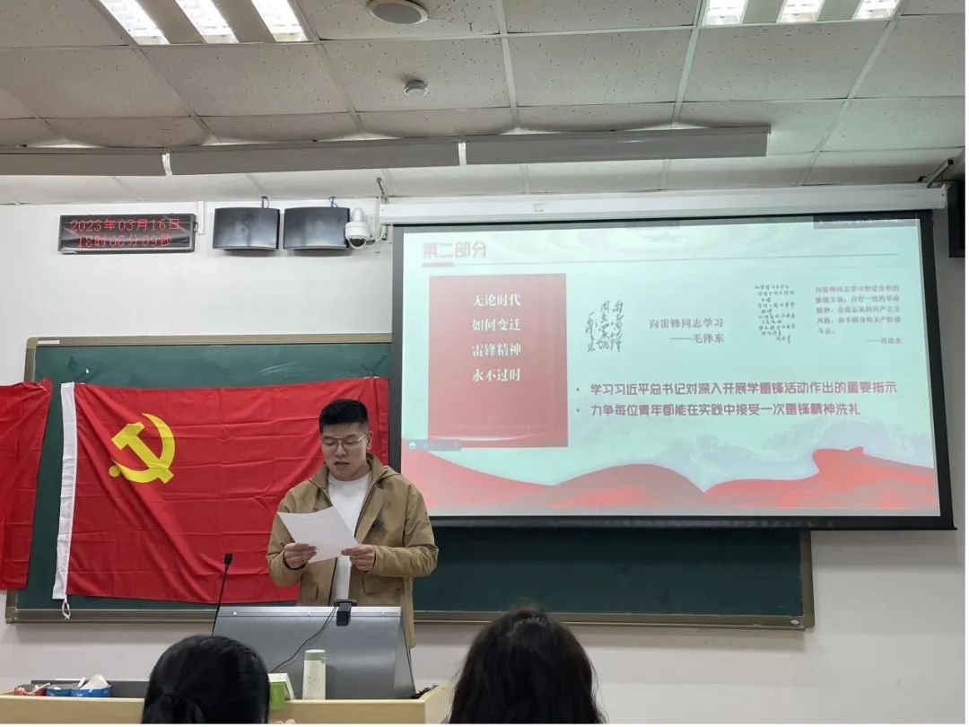 在理论学习环节,同学们分别对二十大报告、两会精神、“学雷锋”思想的学习感悟,展开了深度分享和讨论。大家一致表示,要以高度的政治责任感,认真学习、宣传、贯彻好党的二十大报告和两会精神,践行雷锋精神。要坚守初心使命,踏实学习,不断提高自身素质,做德智体美劳全面发展的社会主义建设者和接班人。
