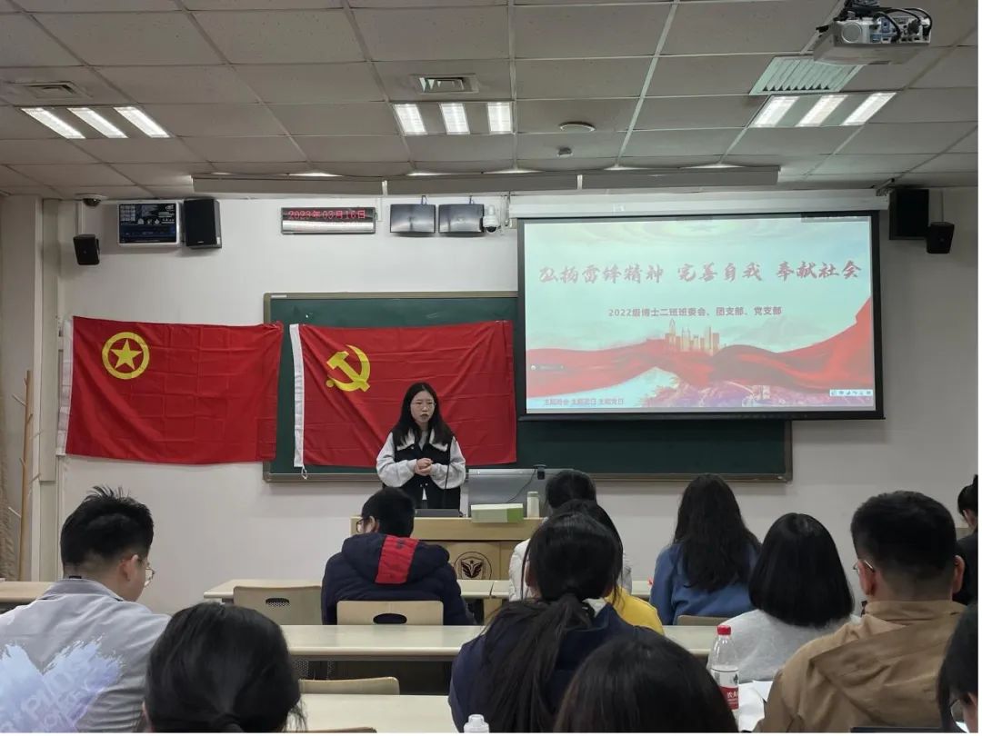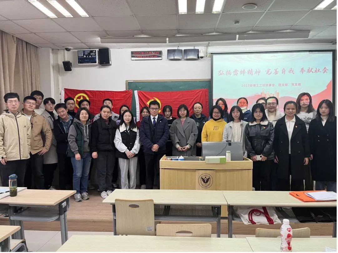 为了进一步深入学习贯彻党的二十大精神,引领广大青年学生坚定理想信念,通过组织班级集体学习,能够切实把思想和行动统一到党的二十大精神。3月16日下午,2022级博士2班于良乡校区106教室召开了2023年春季学期“青春奋进二十大”主题班会及党日团日活动。会议内容包括:二十大报告和两会精神学习感悟分享、“学雷锋”思想讨论、党团知识问答竞赛、新学期思想交流、以及党组织生活会等环节。