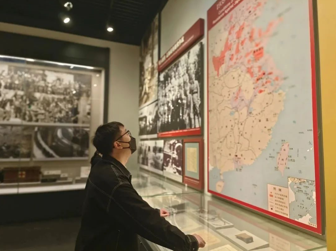 大家在展板前停留,在文物藏品前驻足,一幅幅图片,一件件实物,一段段影像展现了中华民族英勇抗击日本侵略者的伟大历程,讲述了中国人民为世界反法西斯战争取得胜利做出的巨大贡献和重要牺牲。大家再一次重温了从抗日战争全面爆发到中华民族取得抗战全面胜利的历史,即便已经熟知这一段历史,但在馆中每走一步,心灵都会被震撼一次,仿佛穿越到那段艰苦卓绝的岁月中。