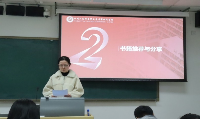 来自不同专业的三名研究生同学进行了好书推荐与心得分享。产业经济学专业的博士生刘冰冰首先向大家推荐法国菲利普·阿吉翁等三位作家的著作《创造性破坏的力量》,该书利用熊彼特增长范式对当下经济中的重大谜题,包括:可持续增长、不平等的根源、长期停滞、中等收入陷阱和竞争与创新、气候变化等主题进行了深刻的分析,作者持有一种观点:市场经济释放的“创造性破坏的力量”是经济强大繁荣的发动机,是应对经济增长谜题的重要法宝。刘冰冰同学谈到阅读书籍为自己带来了思想上的启迪,并认识到创新在经济发展中的重要性。当前我国面临部分关键核心技术受制于人的局面,需要巩固基础研究、夯实原始创新动力,改变以往“重应用轻基础”的研究问题,补齐创新的短板。