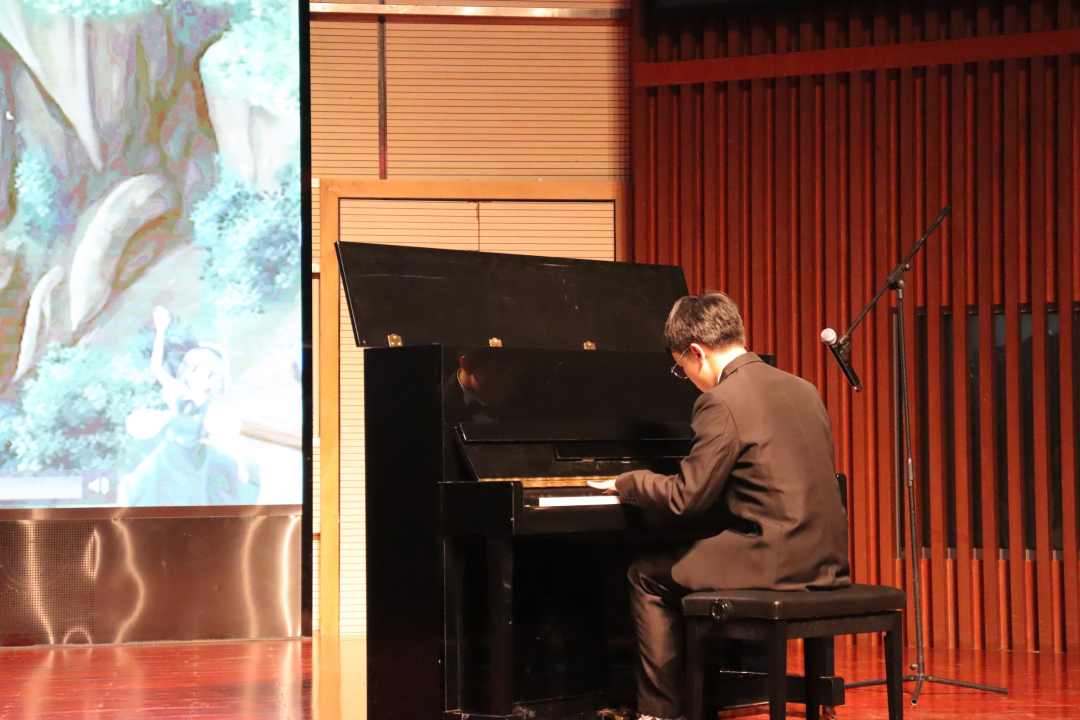 陈俊烨同学以《众神眷恋的幻想乡》为观众们呈现了一场精彩纷呈的钢琴独奏,黑白琴键跃动,音符飞舞,交织出音乐的绚丽画卷。