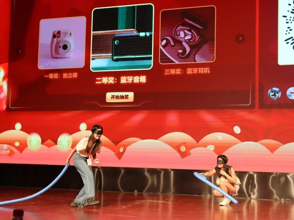晚会中场环节,穿插了互动小游戏与抽奖,现场的同学们积极上台参与互动,为毕业晚会增添了不少欢乐与趣味。
