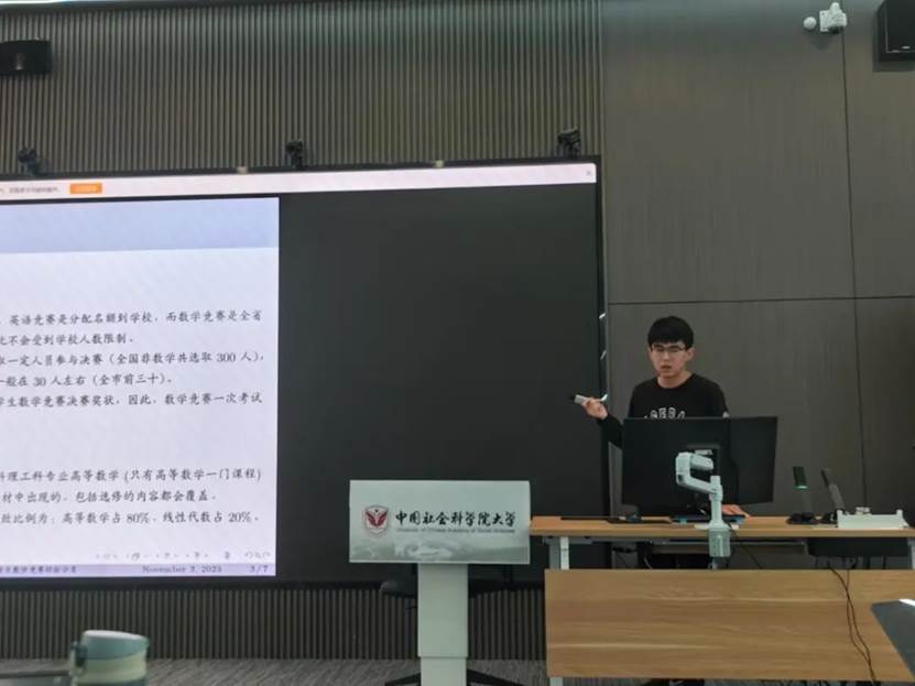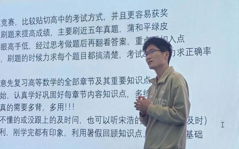 丛正龙学长向我们分享了全国大学生数学竞赛的参赛时间、考试范围、备考方案以及一些考试技巧。学长在分享中提到数学竞赛的考试内容以高等数学为主,大多都是教材中的内容,复习时可以使用类似吉米多维奇这样的习题书。特别的,学长向同学们列出了往届数学竞赛的考题知识点分布,为大家标出了高频考点,帮助同学们高效备考。