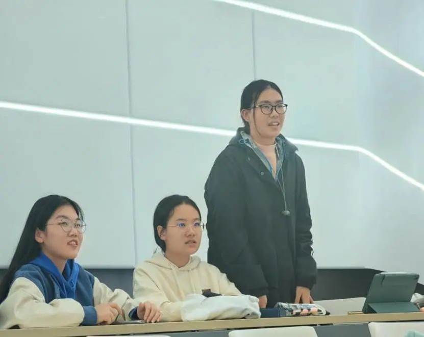在交流提问环节中,同学们踊跃地提出自己的一些问题,比如竞赛题目的难易分布是否均匀以及如何在短时间内备赛等问题。学长学姐们就这些疑惑耐心仔细地一一解答。在互相交流中,学长学姐们不仅为同学们指明了方向,也拉近了双方的距离。