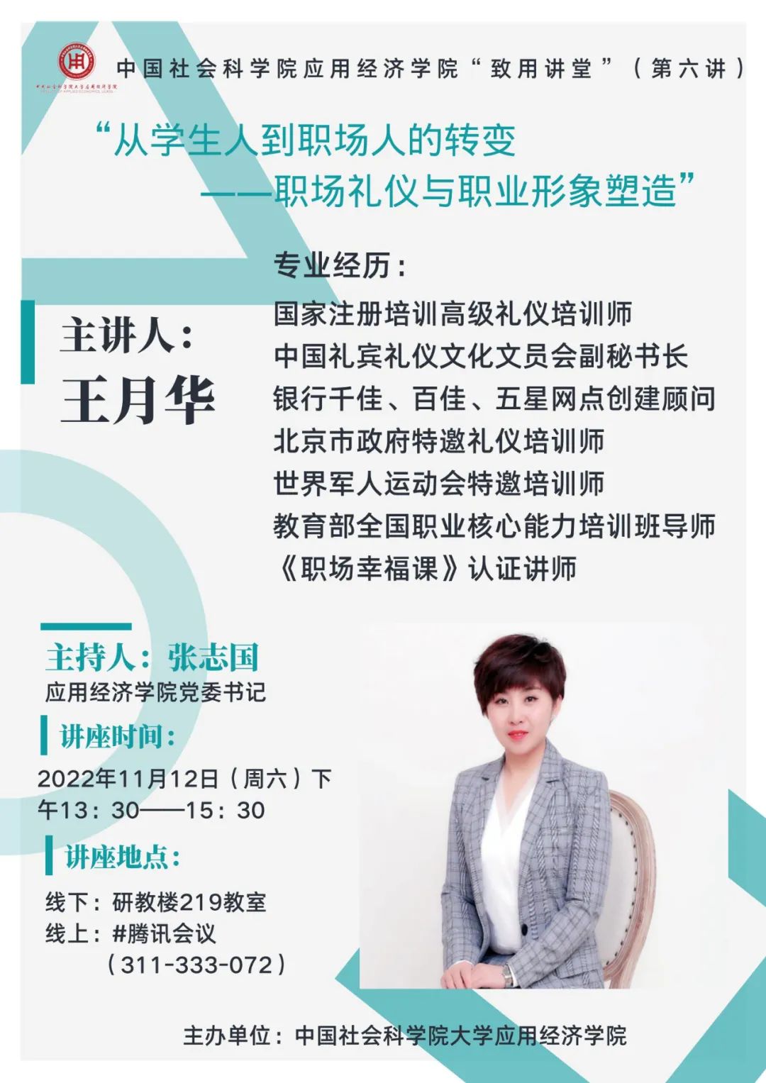 【讲座预告】致用讲堂 第6讲丨王月华:从学生到职场人的转变——职场礼仪与职业形象塑造
