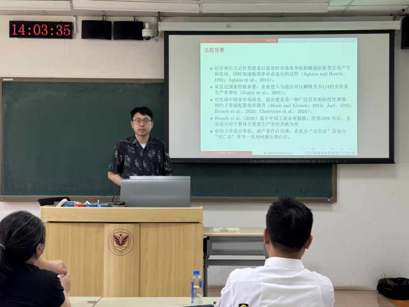 良乡校区教学楼106教室成功举办。本次Seminar特别邀请了中国人民大学经济学院博士研究生江成涛、中央财经大学金融学院博士后张坷坷宣讲论文。多位青年学者及部分在校本、硕、博学生参加。
