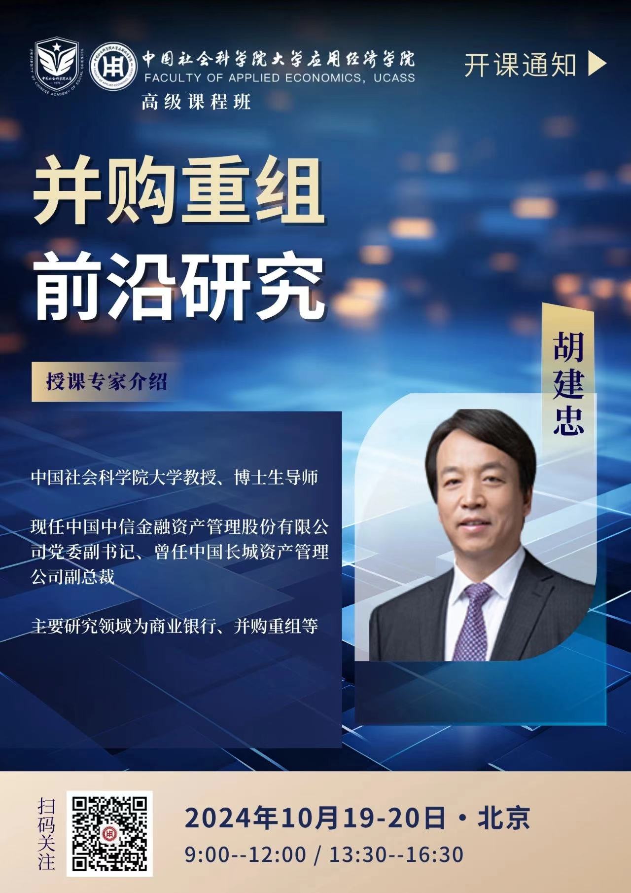 课程预告 | 2023级&2024级经济分析与战略决策高级课程班10月课程《并购重组前沿研究》