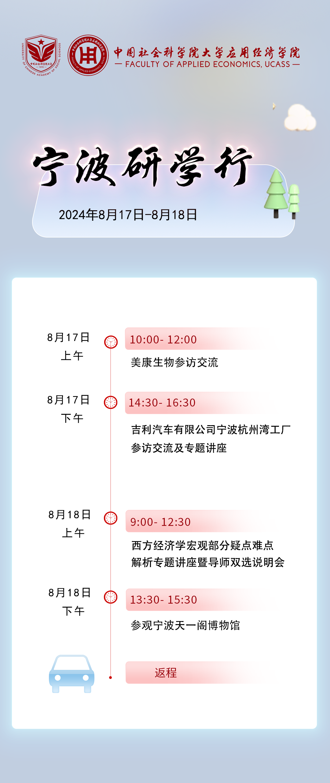 中国P站 高级课程班暑期活动——宁波研学行即将于8月17日启程,这是一场知识与实践的碰撞,也是一次心灵与视野的拓宽之旅。通过企业实地参访,师生一行将近距离感受行业的脉动;同时,也将在学院教授的专业讲授下,深入探索西方经济学宏观部分的奥秘,解开学习路上的重重迷雾。