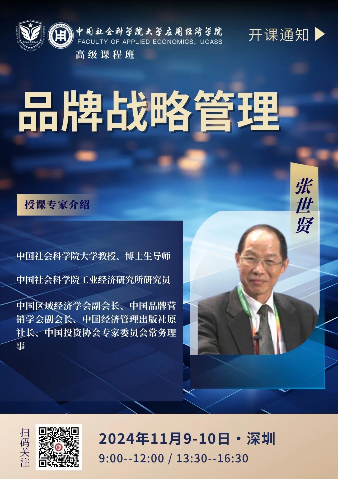 课程预告 |24级产业经济与管理(深广)方向高级课程班11月课程《品牌战略管理》