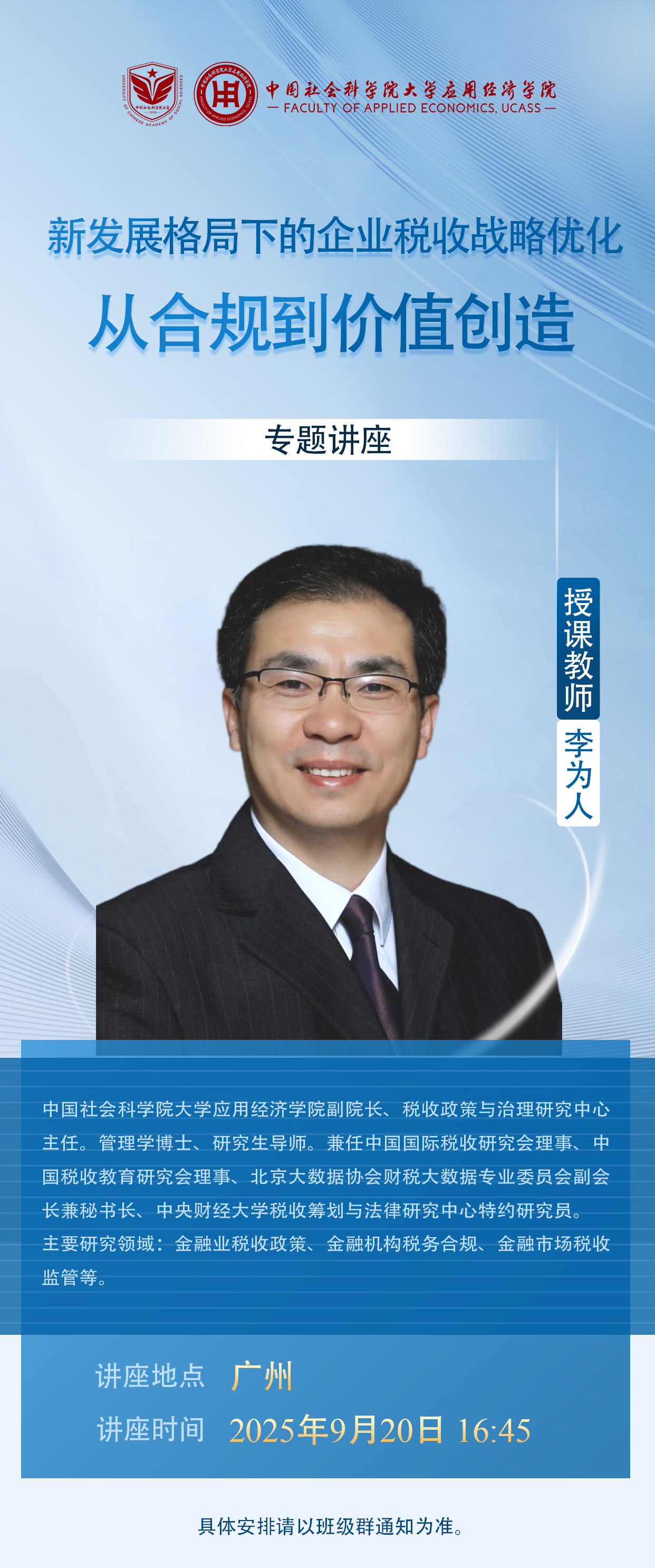 讲座预告 | 新发展格局下的企业税收战略优化:从合规到价值创造